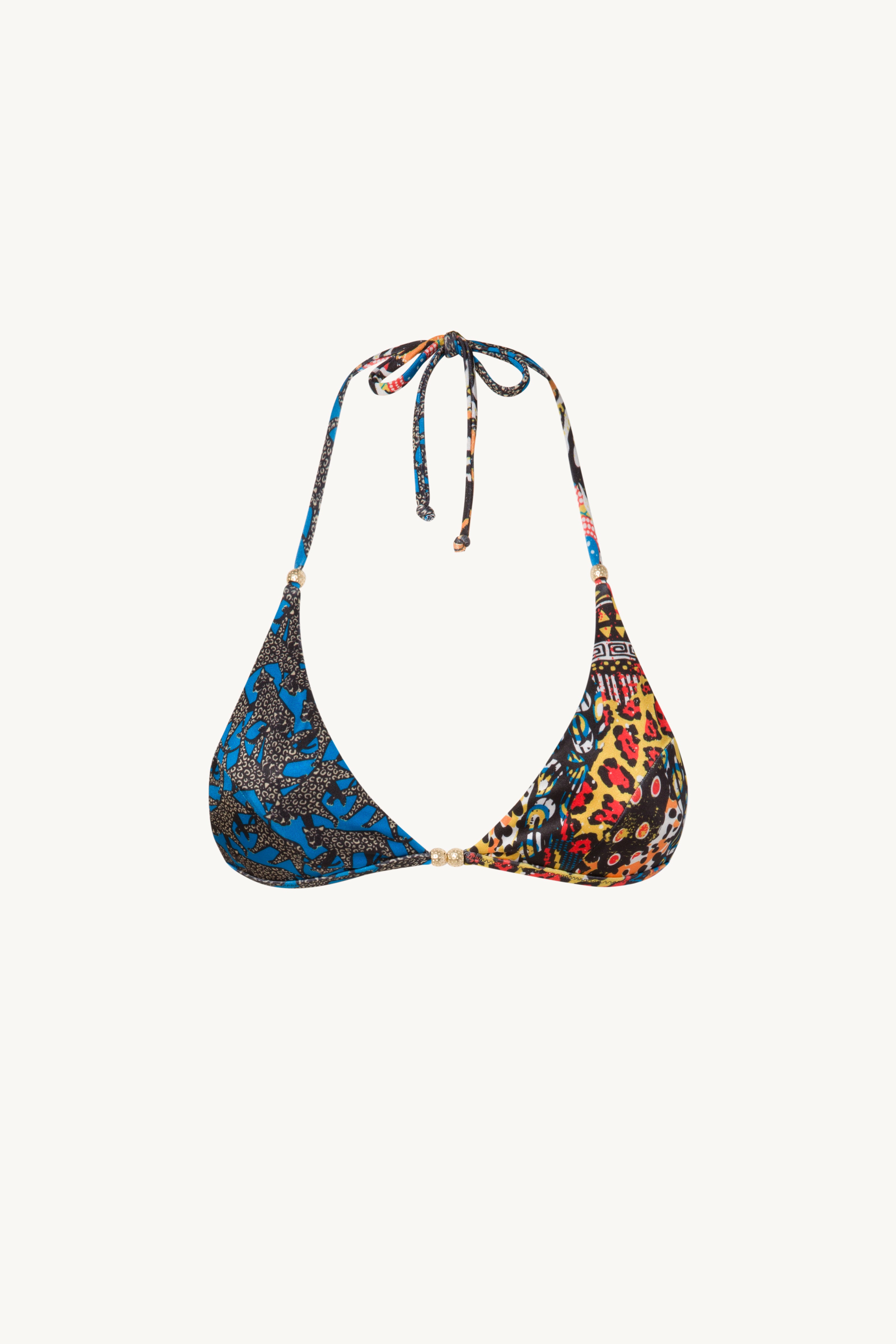 Questo bikini triangolo, realizzato in pregiata lycra italiana, è frutto di una costruzione studiata nei minimi dettagli per valorizzare il décolleté, offrendo volume e sostegno al seno, e armonizzando le forme con eleganza e naturalezza.