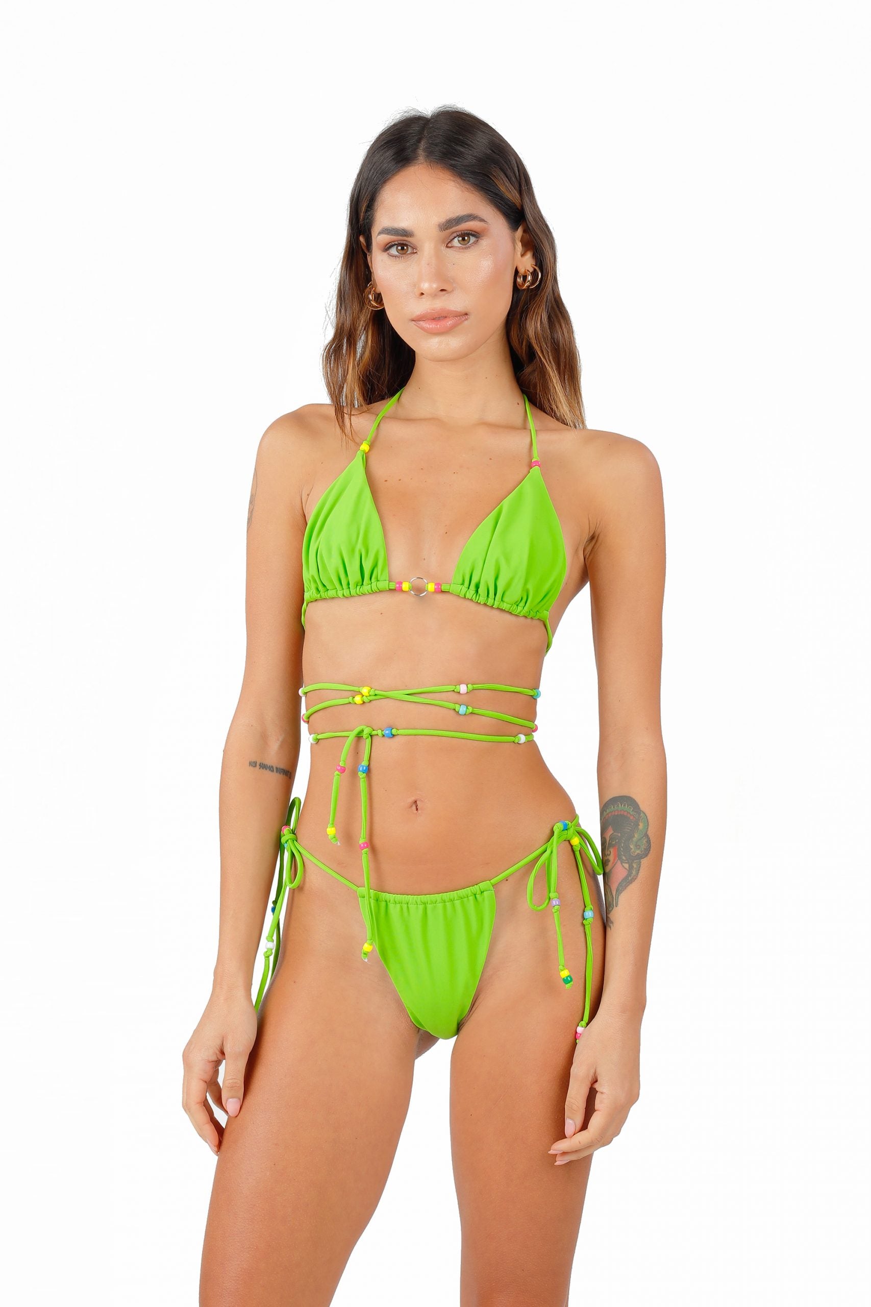Gipsy by Maison Roèl con il suo elegante tessuto in microfibra opaca morbidissima vestirà il tuo corpo alla perfezione. I colori scelti dalla nostra designer si abbinano perfettamente ai diversi toni della nostra pelle esaltandone la bellezza. Bikini in perfetto stile pop anni 70/80 con inserimento di perline colorate che rendono il capo unico ed inimitabile. Triangolo avvolgente dotato di coppe estraibili e slip tendina per regolare a tuo piacimento la scollatura posteriore e anteriore.