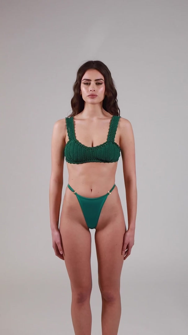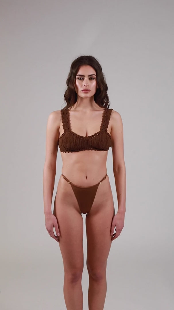 Maggie by Maison Roèl è la fascia crop top in crochet Hand Made del Brand in Cotone 100% Italiano, ricamato a mano dalle nostre sarte, che sono il cuore pulsante e antico del nostro essere e della nostra azienda. La sua costruzione permette un ottimo sostegno e un doppio utilizzo anche per le vostre uscite e aperitivi in spiaggia. Brasiliana in Lycra Lucida con regolatori laterali per permettervi un comodo e f