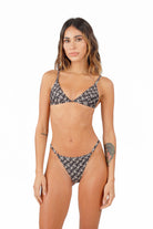 Monogram by Maison Roèl, come tutti gli altri bikini presenti in collezione è prodotto interamente da filiera italiana. Bralette realizzata in lycra brillante e delicata come la seta, viene impreziosita da accessori in zinco e oro totalmente nickel free. Fantasia iconica della collezione con monogramma identificativo del brand stampato direttamente sul tessuto pregiato che Maison Roèl dispone nelle sue collezioni.